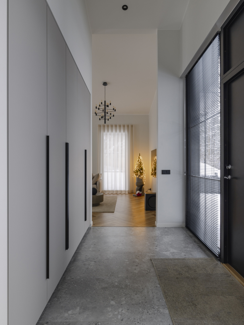 Elutuba-köök on avar ja valgusküllane, moodustades loomuliku keskpunkti nii igapäevaseks koosolemiseks kui ka külaliste vastuvõtuks. Sellest ruumist hargnevad mõlemale poole koridorid, mis loovad hoones teadliku avastamisloogika – liikumine ei ole sirgjooneline ega kohe lõpuni hoomatav, vaid avaneb järk-järgult, ruumist ruumi.